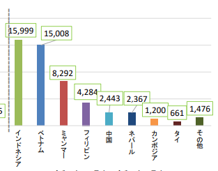 これまで最多を占めていたベトナムに加えて、インドネシアとミャンマーの伸びが顕著です。今後は多国籍化がさらに進むと予想されます。